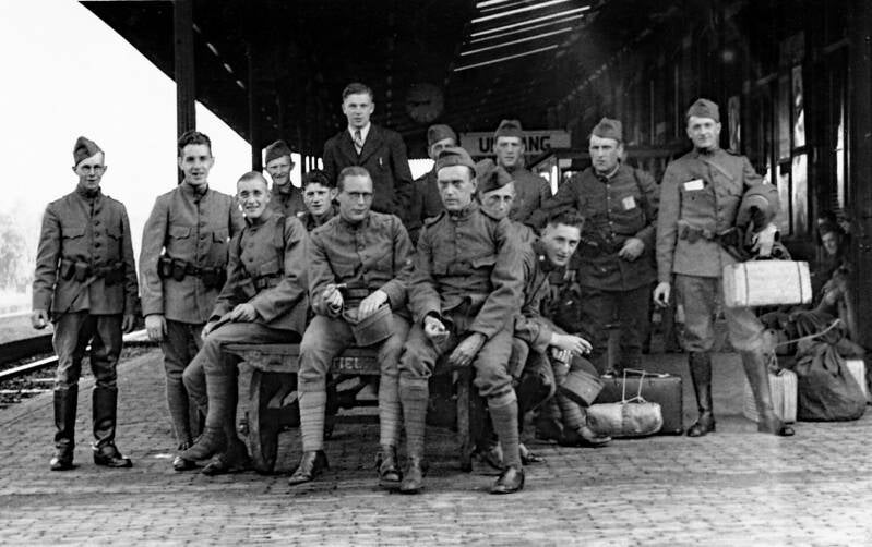 We raakten uitgebreid met elkaar in gesprek. Bij toeval kwam een foto ter sprake van soldaten die op het station in Tiel op de trein stonden te wachten op weg naar hun mobilisatiebestemming op 28 augustus 1939. Ik kende die foto omdat hij in een familiealbum zat en mijn vader er op staat. Pé kende die foto ook: zijn vader staat er ook op.