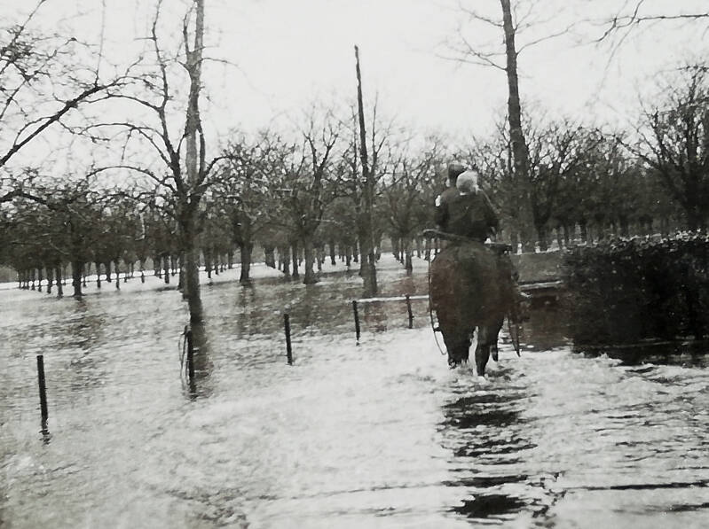 In februari werden ook zij geconfronteerd met de tweede overstroming. De families zaten toen met z'n allen op de zolder van de boerderij. Van een regenton en een badkuip werden vlotten gebouwd, waarmee ze zelfs naar de kerk in Eck en Wiel gingen.